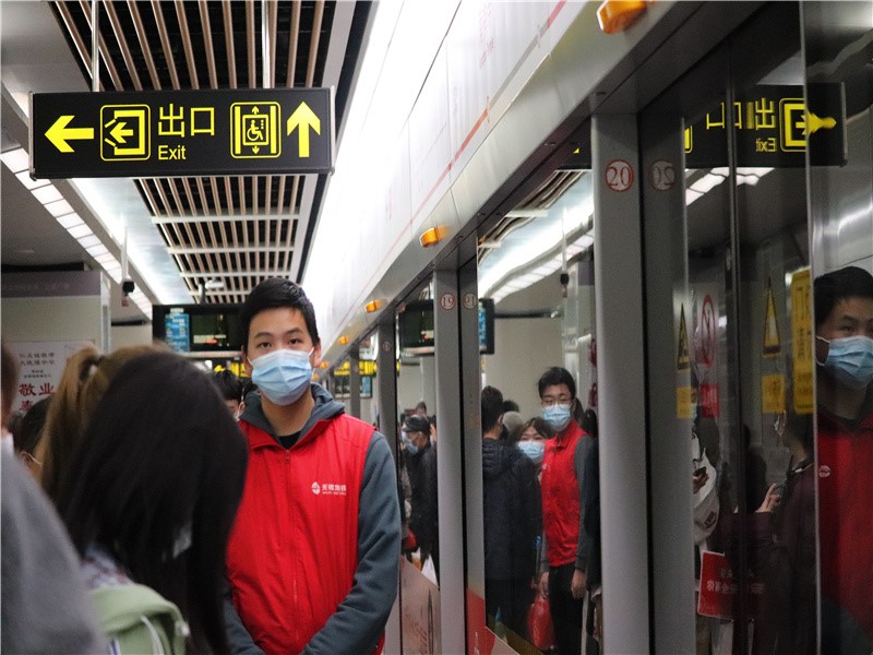 “您好,进站请戴好口罩,出示行程码、健康码,出行多加注意安全。”一个个身着红马甲的志愿者穿梭在地铁一号线三阳广场站,在闸机和屏蔽门前宣传讲解,在自动售票机前引导购票,在站台上维持秩序,在地铁出入口帮助老人搬运行李……一抹抹红色的身影如同初升的朝阳,以饱满的热情和十足的干劲迎接美丽的春天,成为一道亮丽的风景线。