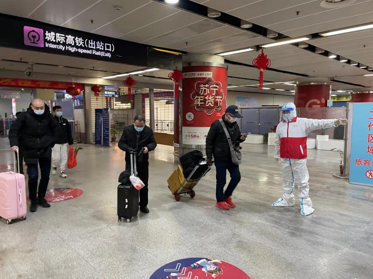 “请伸出胳膊,测一下体温。”“你好,请出示健康码、行程码……”近些天,在无锡火车站进出站口,有一群忙碌的”红马甲“,他们身着防护服,守护着无锡市的铁路客运大门。来自无锡交校船舶工程学院的汪震同学就是其中的一员,他积极相应党和国家的号召,奔赴防疫一线,贡献自己的青春力量。