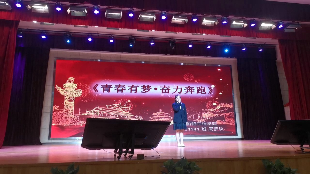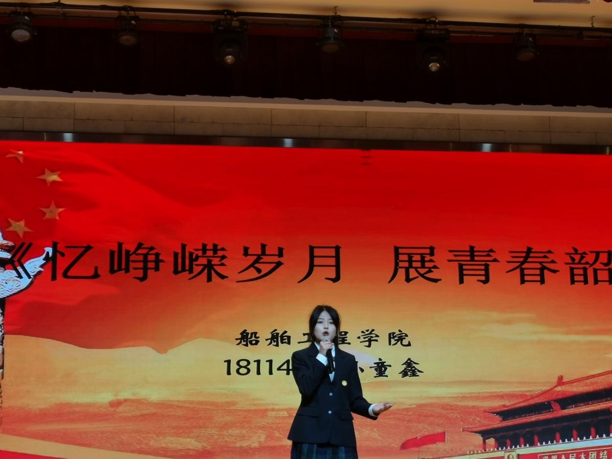 船舶工程学院181141班周薛秋、孙童鑫两位参赛者准备充分,以饱满的热情、激扬的语调展示他们对党和国家的热爱。她们以党和自己的故事为主线,立志要做新时期的社会主义建设者和接班人。最终,181141班周薛秋、孙童鑫两位同学获得一等奖。