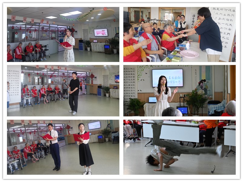 活动现场,同学们精心准备了十余个节目,有歌曲《稻香》《这一生的风景》、有舞蹈《舞法阻挡》、有朗诵《奋斗正当时 青春献给党》等,为老人们带来了一场精彩的视听盛宴,老人们不时拍手,愉悦的心情溢于言表。在听歌识曲、猜字谜游戏互动环节之后,老人们一起学跳了手势舞《护花使者》。随后,同学们与老人们聊起家长里短,倾听来自他们生活中的趣事儿,拉近和老人之间的距离,努力成为他们的“好朋友”。同学们把欢声笑语带进敬老院,给老人送去温暖,为往日安静祥和的敬老院增添了许多欢快喜庆的色彩。