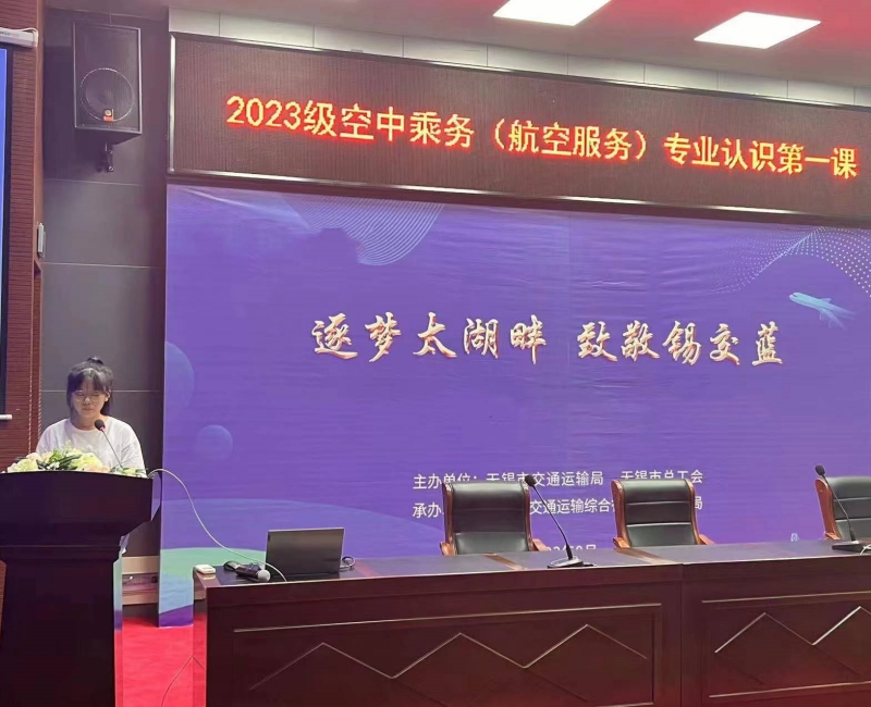 2023年9月12日下午两点,我校船舶工程学院空中乘务(航空服务)专业2023级新生在学术报告厅举办了专业认识第一课宣讲活动。出席第一课的有船舶工程学院吴院长志亚,航空教研室副主任王赟,专业课老师及新生班主任。