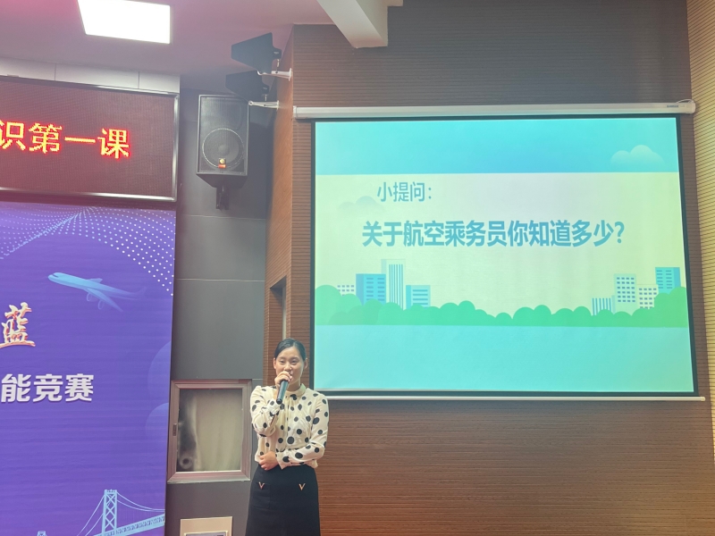 最后,吴依霖老师就空中乘务(航空服务)专业内容做具体讲解,包括空中乘务(航空服务)专业基本介绍、专业课介绍、职业方向及要求和学生在校行为规范四大点,让学生对空中乘务员这个职位有了更深入的了解,要求大家平时学习生活中也要用空中乘务员的标准来更加严格要求自己,努力成为一个优秀的空中乘务(航空服务)专业学生。
