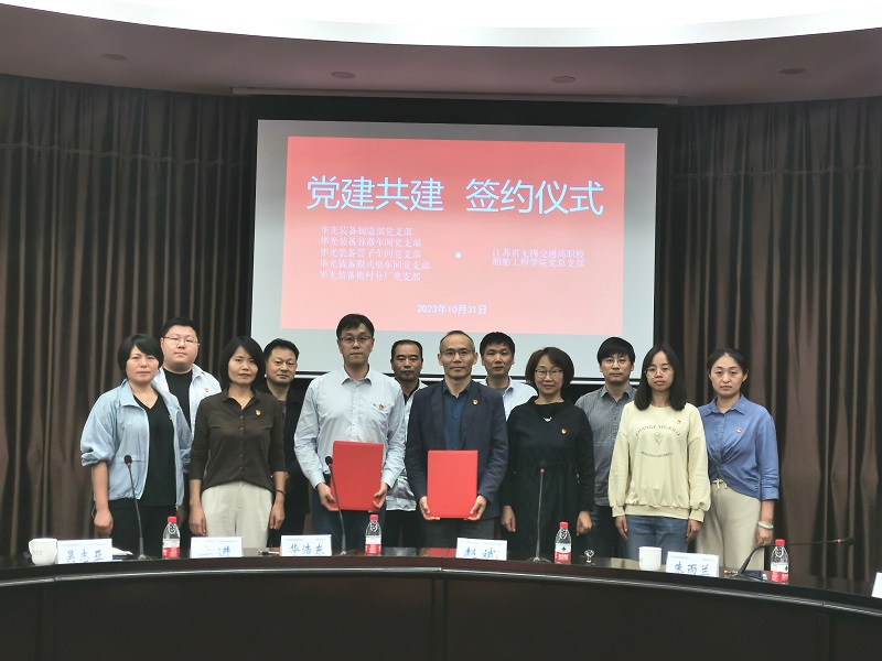 为进一步发挥党建引领作用,积极探索校企深度融合发展的新举措,构建互促共赢党建格局,助力学校高质量发展,2023年10月31日下午船舶工程学院党总支书记赵斌带领学院党总支委员和党支部书记一起到无锡华光环保能源集团股份有限公司与装配事业部制造部开展了以“党建共建、发挥合力、共赢未来”为主题的党建共建活动,华光环能装配事业部制造部党支部书记、部长华浩东携容器车间、管子车间和膜式壁等车间党支部书记等同志一起参与了仪式。
