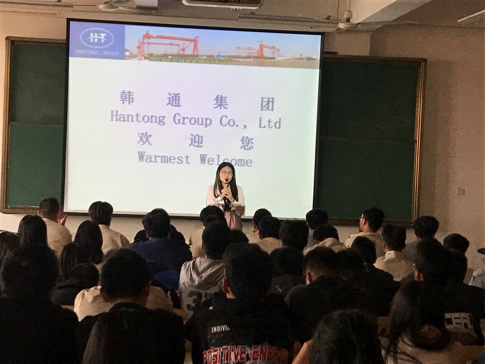 2019年11月4日,新韩通船舶重工有限公司林经理和王经理来校洽谈招聘事宜。我院15级高职和17级中专学生参加了此次宣讲会。
