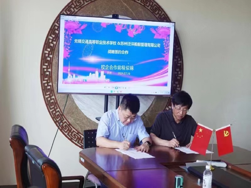 7月16日,我校与苏州泛洋船舶管理有限公司在苏州成功举办了战略合作协议签约仪式。出席本次签约仪式的有校党委书记、校长李进,副校长吴雪琴、王珏,苏州泛洋船舶管理有限公司总经理沈晓平。船舶工程学院、继续教育学院负责人,苏州泛洋船舶管理有限公司相关部门负责人也参加了本次仪式。本次合作旨在通过资源共享、优势互补,共同推动航海教育的发展,培养更多符合行业需求的高素质人才。
