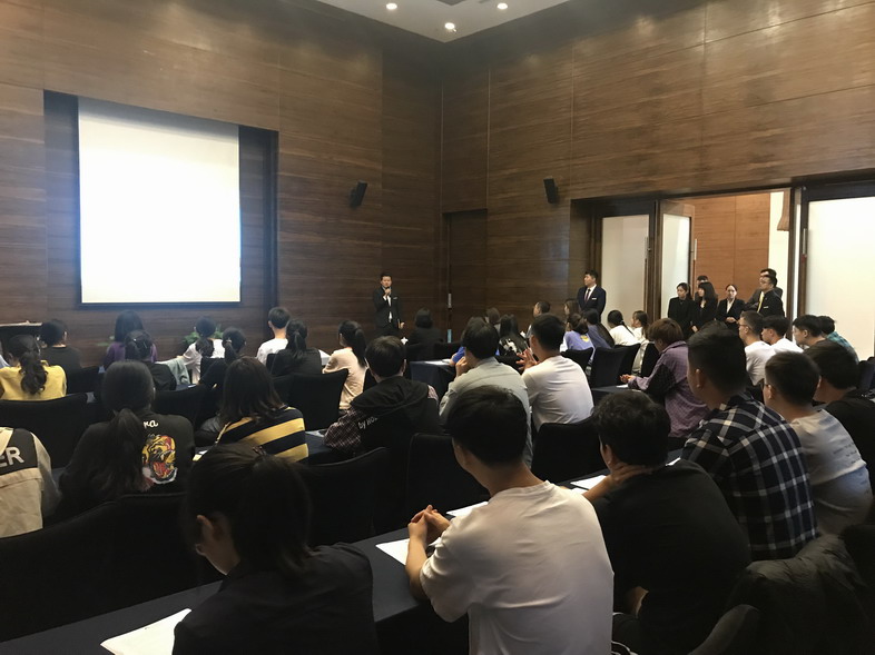 首先由无锡太悦度假酒店管理有限公司顾焱达经理向大家介绍了无锡太悦度假酒店的发展历程、企业文化以及入职条件等;接着由各部门经理对本部门情况进行简单介绍及挑选合适人选入职。入职仪式中各酒店部门经理与学生热情洋溢的互动,使学生对酒店和岗位都有了新的认识,对今后的工作充满了期待和激情!