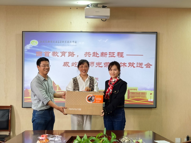 欢送会接近尾声,学院领导为咸屹老师献上精心准备的工会慰问品与鲜花。娇艳欲滴的鲜花,象征着咸屹老师繁花似锦的教育事业,每一片花瓣都承载着她辛勤耕耘的成果;饱含心意的慰问品,则传递着学院对她多年来辛勤付出的敬重与关怀。这份礼物,不仅仅是物质的馈赠,更是对她为教育事业无私奉献的高度认可,是学院对她的深情厚谊的生动体现。