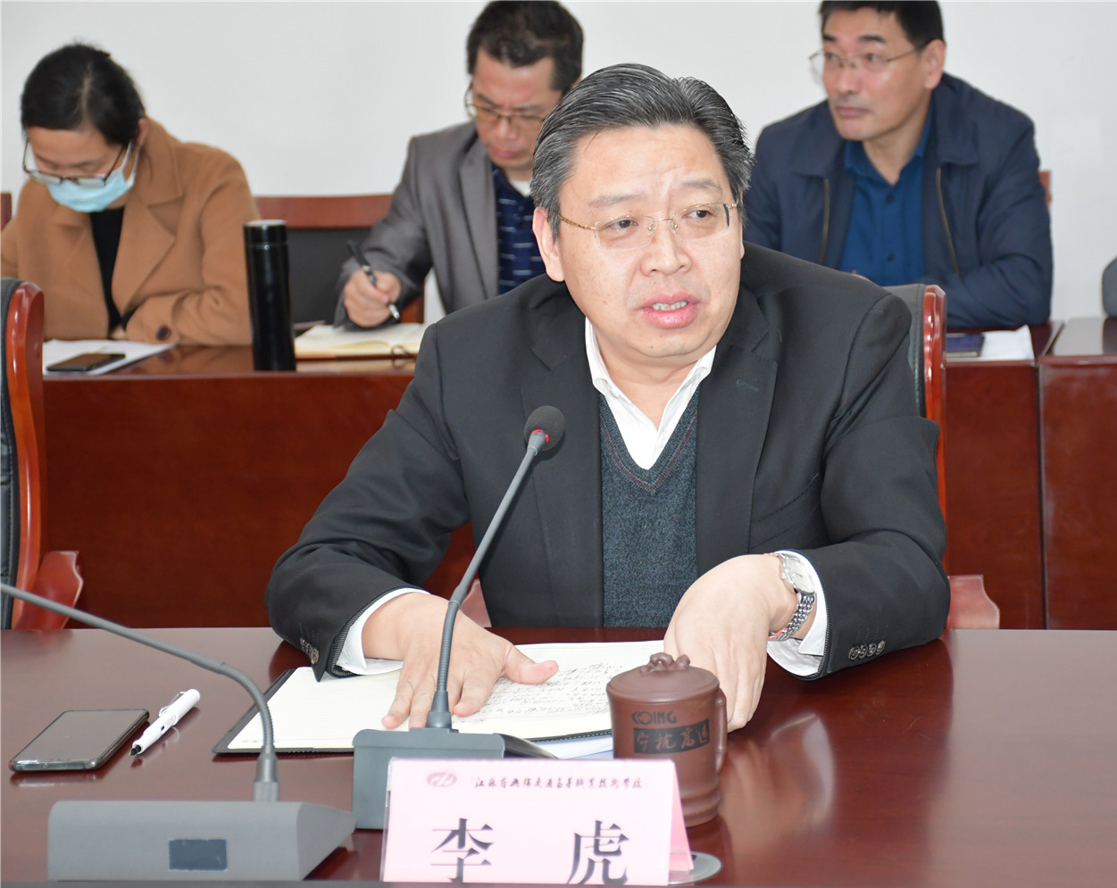 中国共产党第十九届中央委员会第六次全体会议召开之际,学校党委迅速行动,第一时间组织师生通过电视、广播和网络,认真学习全会精神。并于11月12日,特别邀请学校马克思主义学院客座教授、无锡市委讲师团团长王铭涛作学习贯彻党的十九届六中全会精神辅导报告。全体校领导出席了报告会,会议由学校党委副书记朱雨兰主持。