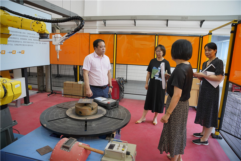 季处长一行先后走访了学校江苏省交通装备工业机器人、焊接实训基地、电气自动化技术实训基地、智慧监控室、职工之家、防疫物资库等重点场所,详细了解学校人员管理、防疫物资储备、学生开学准备、意识形态工作责任制落实、实训基地建设等情况。
