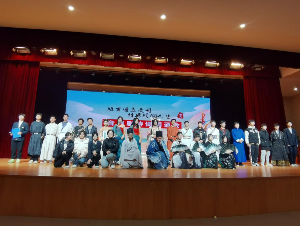 13日下午,由基础教学部主办,语文教研室承办的“雅言传承文明,经典浸润人生”音舞剧诗词朗诵会在学校大礼堂举办。来自信息管理学院、交通工程学院和机电工程学院的200余名学生,在这场活动中共同领略诗词的华彩之美浸润感受诗词的魅力