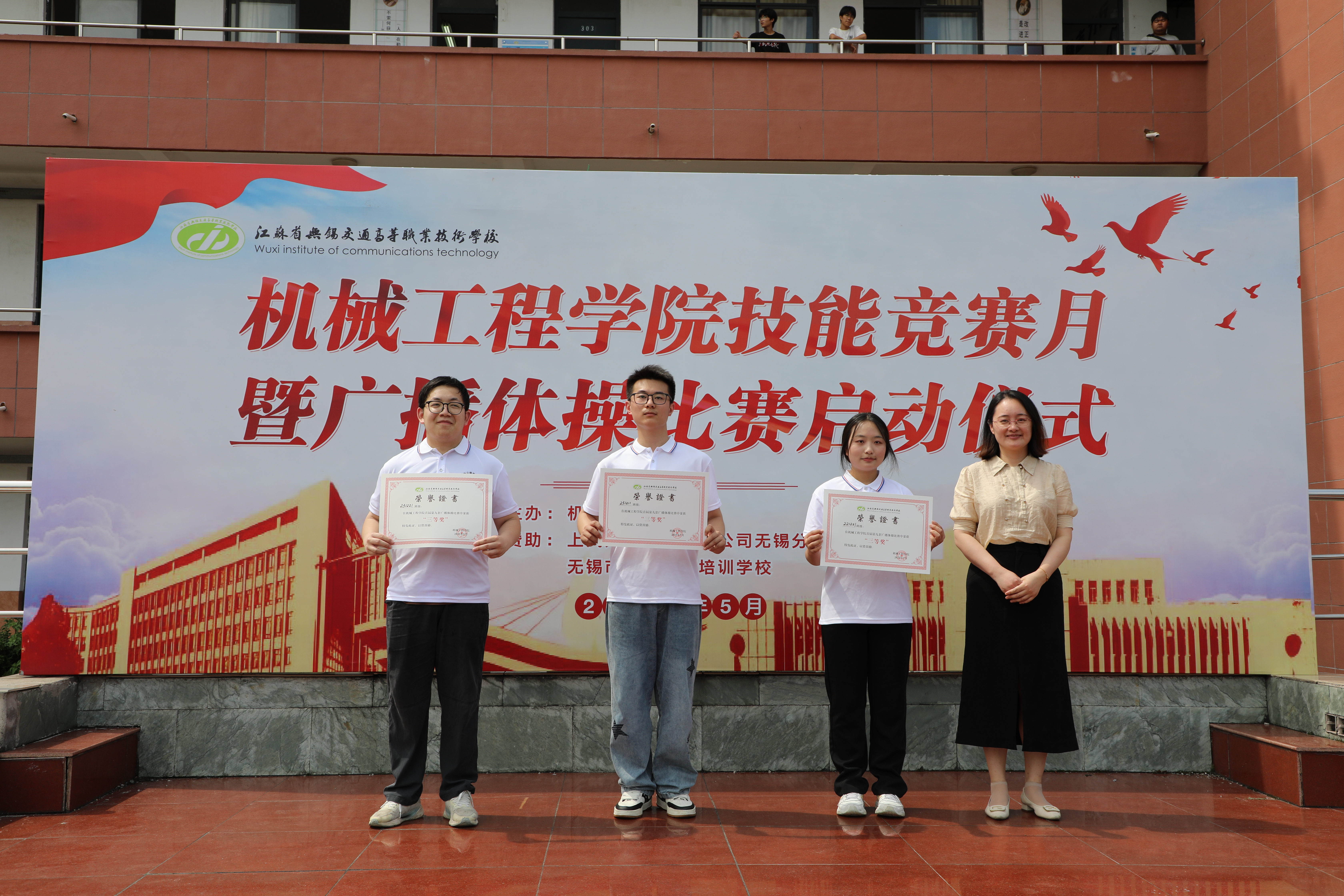 5月21日下午,锡澄校区迎来了备受期待的校园开放日活动,本次活动吸引了众多家长走进校园,观摩并体验广播操比赛、技能竞赛、家校沙龙等丰富多彩的校园生活,感受教育的温度与力量。学校党委委员、副校长吴雪琴,上汽大通无锡分公司副经理蔡蓉,无锡市精英培训学校负责人丁辉,基础教学部、机械工程学院负责人参与活动。
