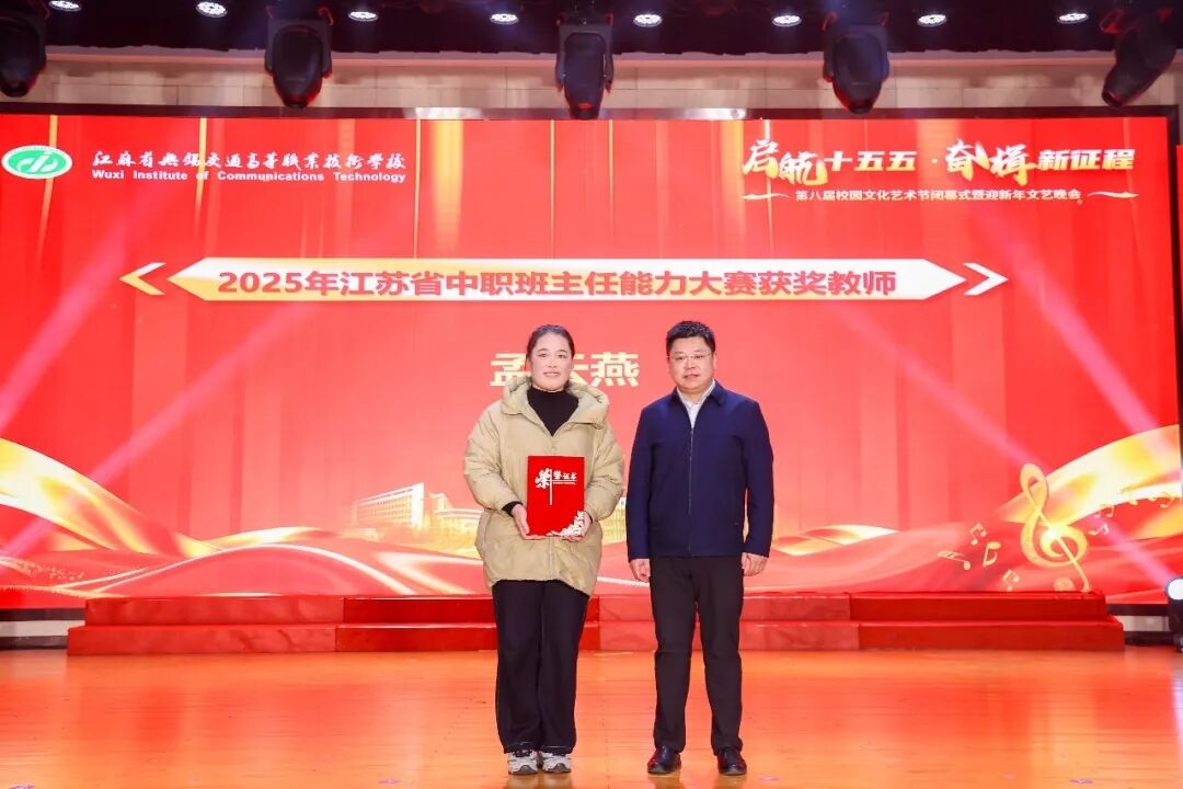 晚会首先举行颁奖仪式。校领导先后为2025年度在市级以上班主任能力大赛、省级以上创新创业大赛与职业技能竞赛、文体艺术赛事中荣获佳绩的师生代表,以及国家奖学金、校长奖学金、市级以上“三好学生”“优秀学生干部”获得者颁奖。一年来,学校坚持立德树人、以文化人,师生在各级各类平台屡获殊荣,展现了扎实的专业功底、出色的综合素养与昂扬的精神风貌。