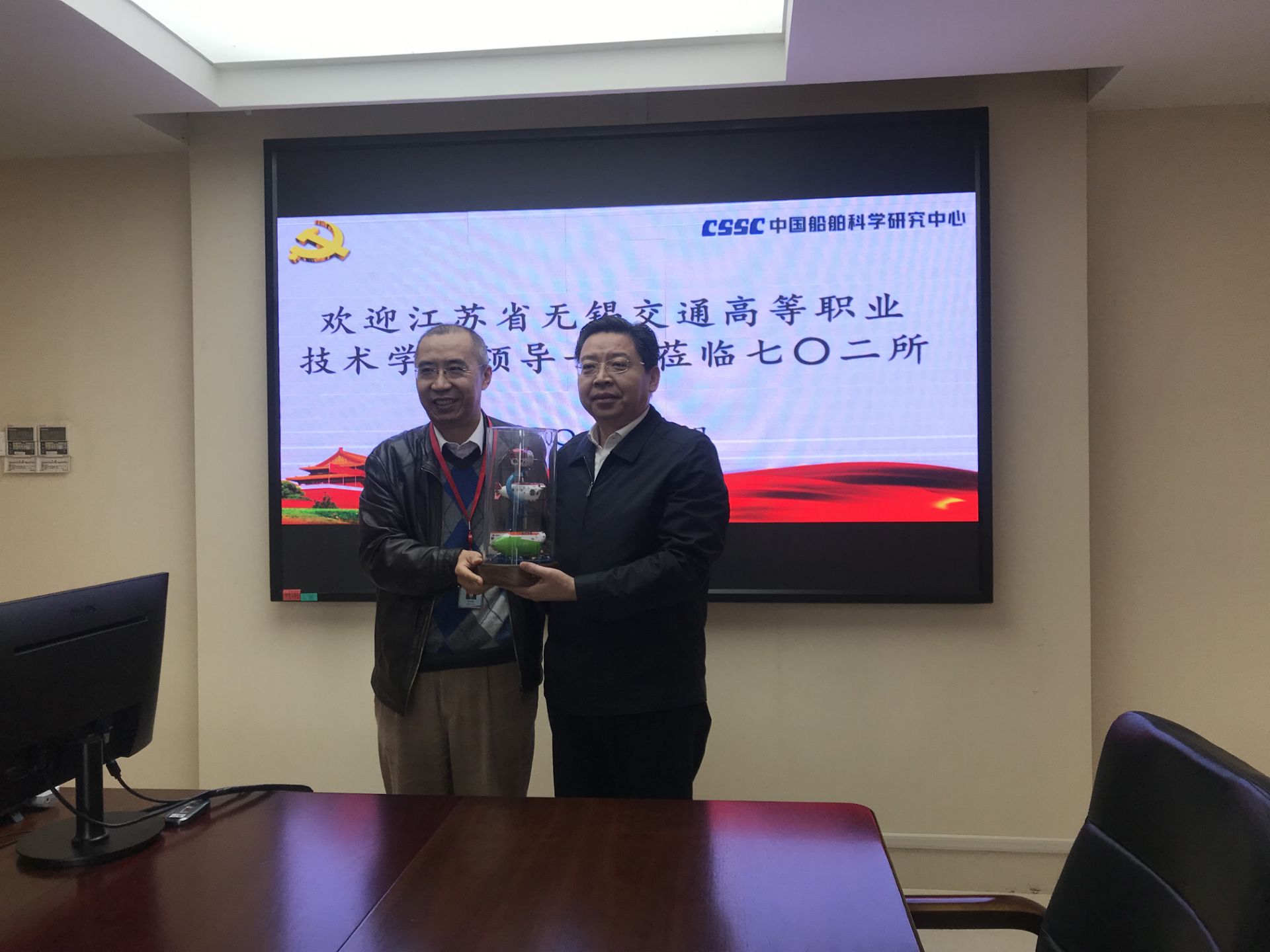 七〇二所党委书记、副所长周伟新等领导对李虎书记一行的到访表示热烈欢迎。周伟新书记介绍了七〇二所基本情况,并且详细介绍了“蛟龙”号、“深海勇士”号和“奋斗者”号研发制造过程。