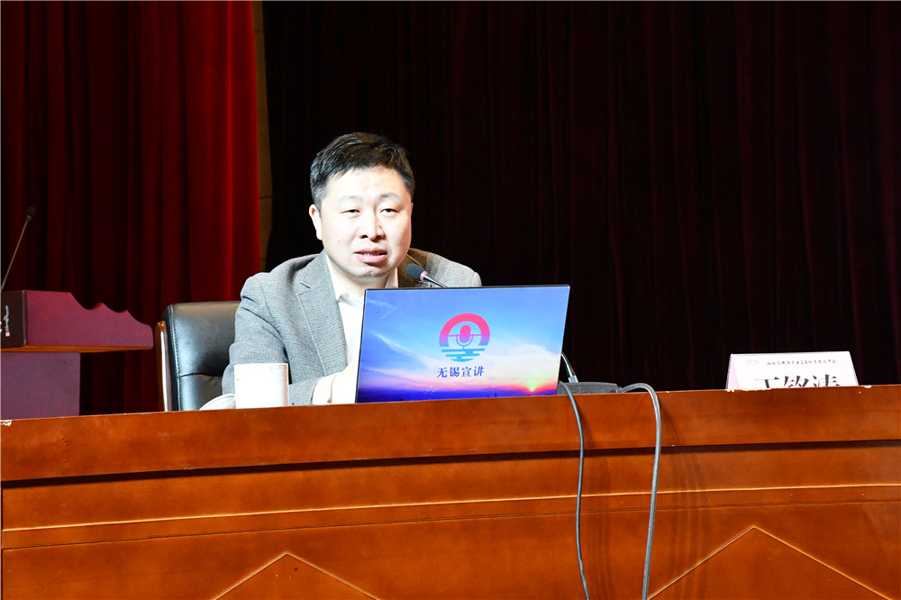 414日,学校举办党史学习教育专题辅导报告会。中共无锡市委宣讲团成员、市委讲师团团长王铭涛作宣讲报告全体党员干部、入党积极分子、学生代表400余人现场聆听了报告。宣讲会由学校党委书记、校长李虎主持。