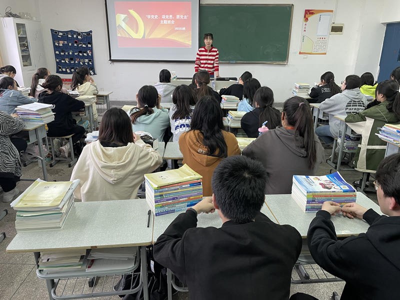 428日,192151班班主任、驻班党员万玉华老师在班级组织学生开展了学党史、颂党恩、跟党走主题班会,班会课上通过视频、图片及学习《中国共产党简史》让同学们了解中国共产党艰苦卓绝的奋斗历程,号召同学们树立远大志向,热爱伟大祖国。同学们交流讨论,分享收获,表达了对党的感恩之情,坚定了听党话,跟党走的信念。