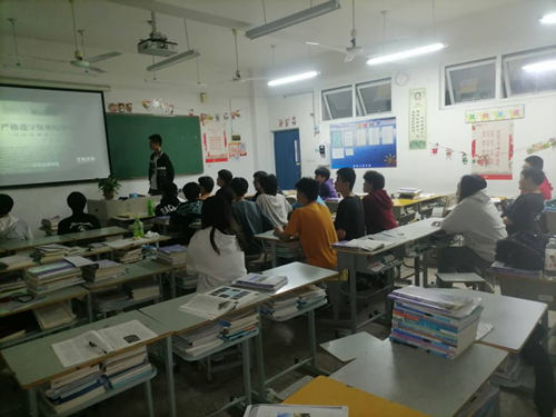 各班团支书在讲台上为学生们演讲建党百年路。从1921年到2021年,中国共产党走过了百年岁月,百年征程波澜壮阔,百年初心历久弥坚。我们要牢记红色政权是从哪里来的,始终铭记缅怀革命烈士。