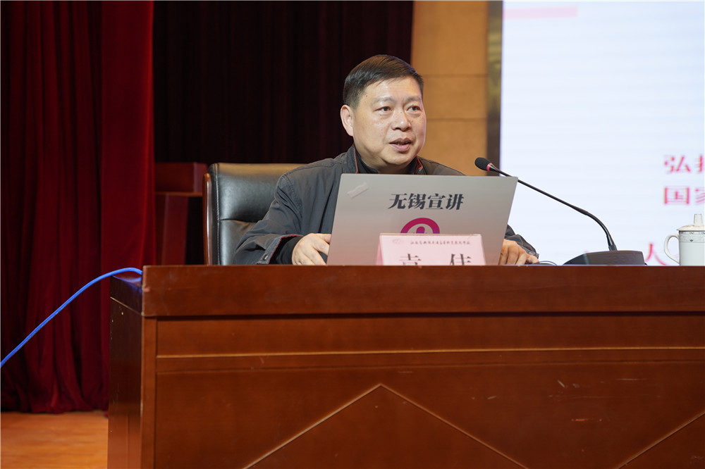 动员会上,学校还邀请了无锡市委讲师团副团长袁伟为青年师生作辅导报告。他以《乘风破浪 行稳致远——以中国式现代化全面推进中华民族伟大复兴》为题,围绕大会概况、理论阐释和总结概括三个方面对党的二十大报告作了深入系统的解读与阐释。授课内容系统全面、内涵丰富、分析透彻、契合实践,为全体青年师生深刻理解和准确把握党的二十大精神提供了思路和指导,大家专注听讲,认真记录,受益匪浅。