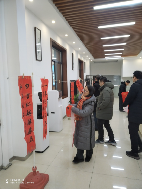 一幅幅吉祥喜庆的“福”字和春联映出老师们喜悦的笑脸,传递年味,送上问候。活动既弘扬了中华优秀传统文化,又丰富了校园精神文化生活,充分发挥了凝心聚力的作用,更为学校高质量发展增添了勃勃动力。