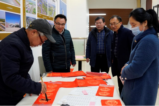 活动中,教工书法社团的老师们提前书写了近百幅“福”字及春联提供全校教职工选择领取。学校还特别邀请了吉林省公主岭市美术家协会副主席、吉林省书法家协会会员、中华诗词协会会员著名书画家郝东奎来到校园为大家现场书写春联,教职工都非常感动,学校党委书记、校长李进也来到活动现场慰问郝老,感谢他为学校的文化建设贡献的一份力。