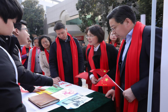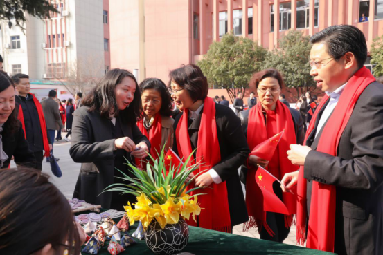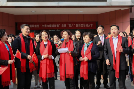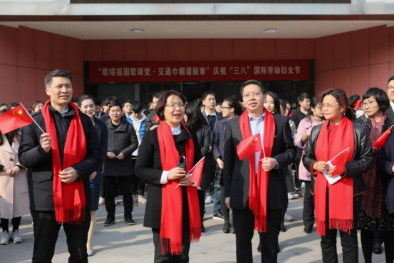 当天,正德楼广场上正在举行“歌唱祖国歌颂党.交通巾帼谱新章——庆祝 “三八”国际劳动妇女节109周年主题活动展”和学生社团展示,陆续经过的师生纷纷驻足观看展板和社团展示。15:30,一阵悠扬的口琴声从广场西侧响起,演奏的正是大家耳熟能详的《我和我的祖国》旋律,正当大家寻找乐声来源时,声音浑厚的男中音我校倪校长一句满怀深情、发自内心的清唱将师生的目光吸引,四名主唱从人群中走出,《我和我的祖国》的歌声回荡在正德楼广场上空。主唱演员或面对周围观众,或互相对望,深情动人的歌声感染了现场师生,他们挥动小国旗,随着音乐的旋律一起合唱。来我校庆祝“三八”活动的厅机关全体女干部职工、厅属单位女处级干部和女职工代表在参观校园时,被歌声吸引,她们戴着红围巾,手摇小国旗,纷纷加入齐唱《我和我的祖国》,将活动推上了高潮,全场欢呼,祖国您好!祖国我爱您!祖国万岁!节日的气球带着对祖国的祝愿,带着对祖国的情怀升上了天空,飞向远方。活动结束后,大家意犹未尽,陈厅长和厅女干部清唱《我和我的祖国》,并畅谈感受。现场观看的同学也表示:“活动很精彩,让人振奋,表达了交校人的爱国情怀,我们非常希望祖国能够越来越强大,越来越繁荣。”还有的同学说:“开展此类爱国主义教育活动,有助于我们铭记艰苦奋斗的历史,提醒我们不忘初心、牢记使命,继续奋力前行。”