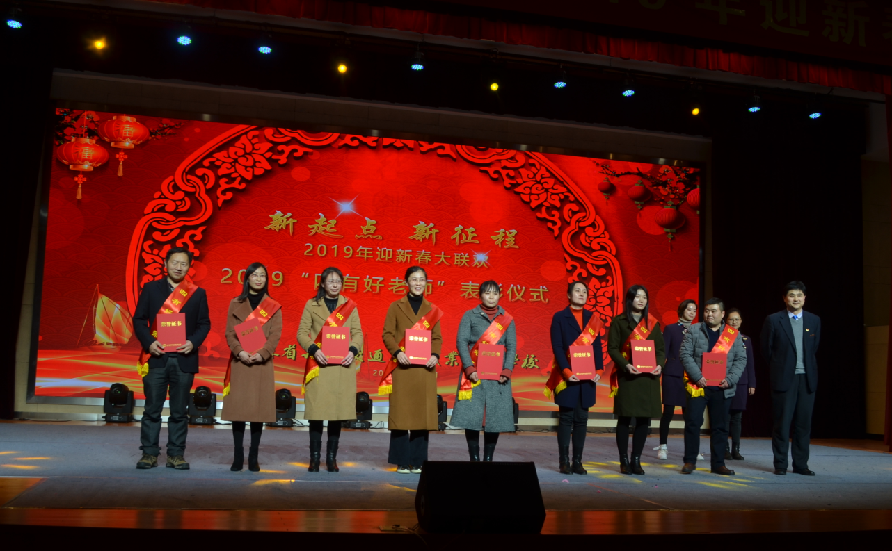 活动在充满活力,幽默搞笑的《萌猪拜年》中正式拉开了序幕。首先,陆春其校长向全体教职员工致新年贺词,陆校长回顾了学校2018年各项工作取得的成绩。他代表学校党政向全校师生员工、离退休老同志,向所有关心、支持学校事业发展的各级领导、各界朋友,致以诚挚的问候和最美好的祝福!在精彩纷呈的节目过程中,校党委副书记、纪委书记朱雨兰宣布《学校2018年十件大事》。邢勇副校长宣读 “四有”好老师表彰决定并颁奖。耿兴华副校长对在建校60周年师生汇报演出活动中表现优秀的10个团体进行表彰颁奖,倪依纯副校长对在建校六十周年活动中作出重要贡献的8个工作组进行表彰颁奖。节目过程中,全体教职工观看视频,重温建校六十周年汇报演出的台前幕后、回顾建校六十周年工作组人员攻坚克难的精彩瞬间、回味学校示范校创建工作的艰辛,最后校党委书记李虎向全体教职员工颁发特别奖,并致颁奖词,对全体教职工在2018年三大重点任务中的突出表现给予高度评价。最后,活动在校领导领唱的《我们走在大路上》拉下帷幕。