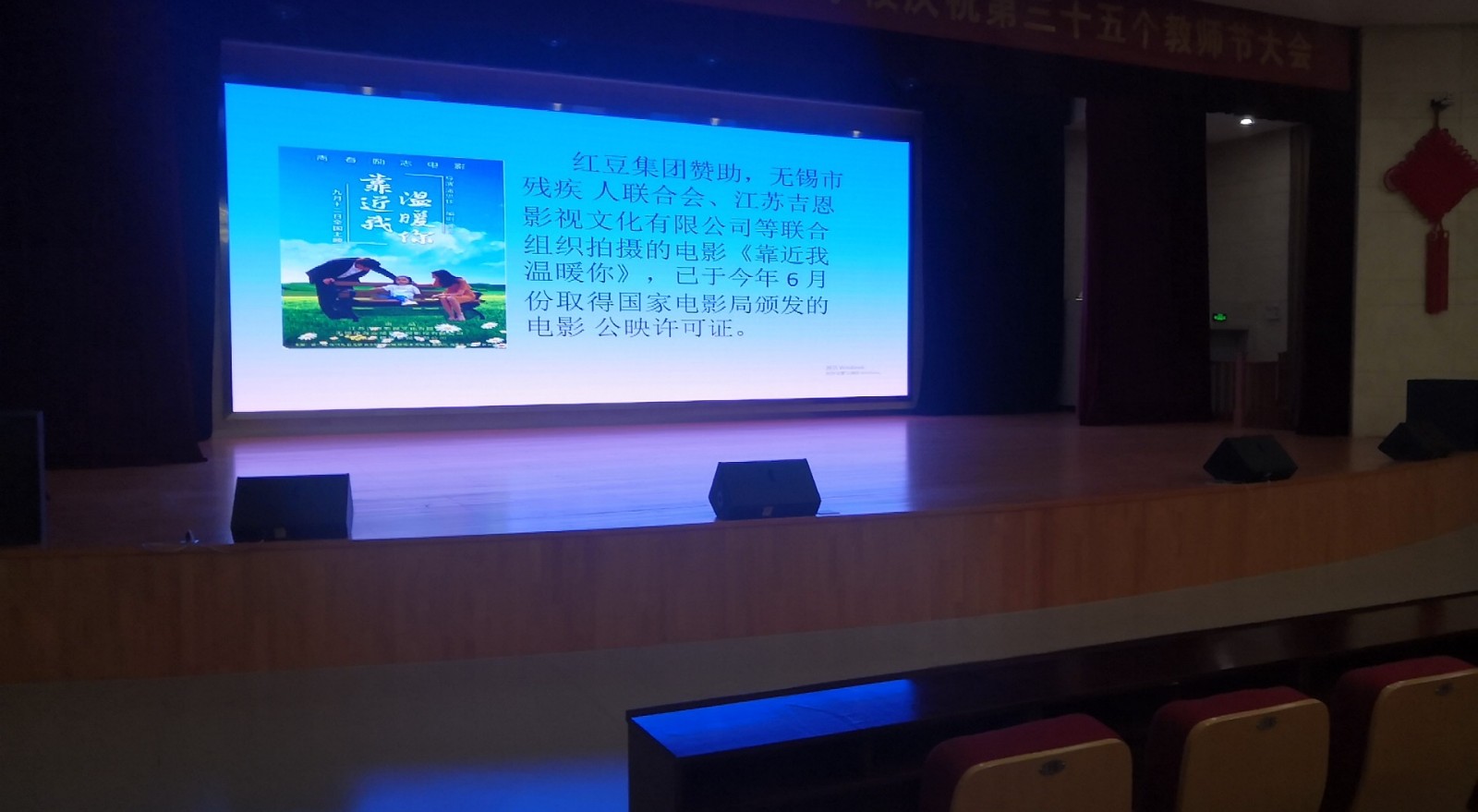 青春励志故事片《靠近我温暖你》,9月12日在全国院线公映,采用轻喜剧爱情片的方式,展示了人性平凡而伟大的一面,情节感人至深,催人奋进。根据江苏省残联、江苏省教育厅、江苏省总工会、共青团江苏省委和江苏省妇联的通知精神,经研究,校工会2019年9月18日(周三)15:30组织全校教职工和部分学生,计700多人在钱荣校区南校园致远楼四楼大礼堂观看了影片。