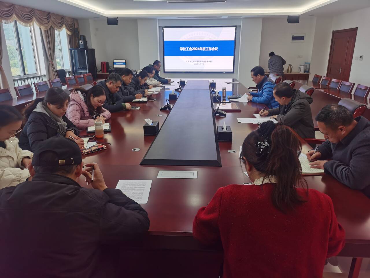 2025年01月06日,校工会召开2024年度工作会议,校第四届工会委员和各分工会主席参加了会议,会上耿兴华主席向大家传达了上级有关年底慰问文件精神,集体学习了总书记新贺词和全国总工会慰问信。向汽车工程学院分工会颁发了全国模范职工小家铜牌。大家一起讨论了困难职工补助方案,教职工慰问方案。