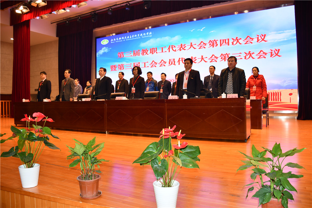 2020年1月14日,我校三届四次教职工代表大会暨三次工会会员代表大会在大礼堂隆重召开。校党委书记李虎、副校长耿兴华、倪依纯、邢勇出席了会议。本次会议共有75名正式代表、3名特邀代表、8名列席代表参加了大会。大会由校党委副书记、纪委书记朱雨兰主持。