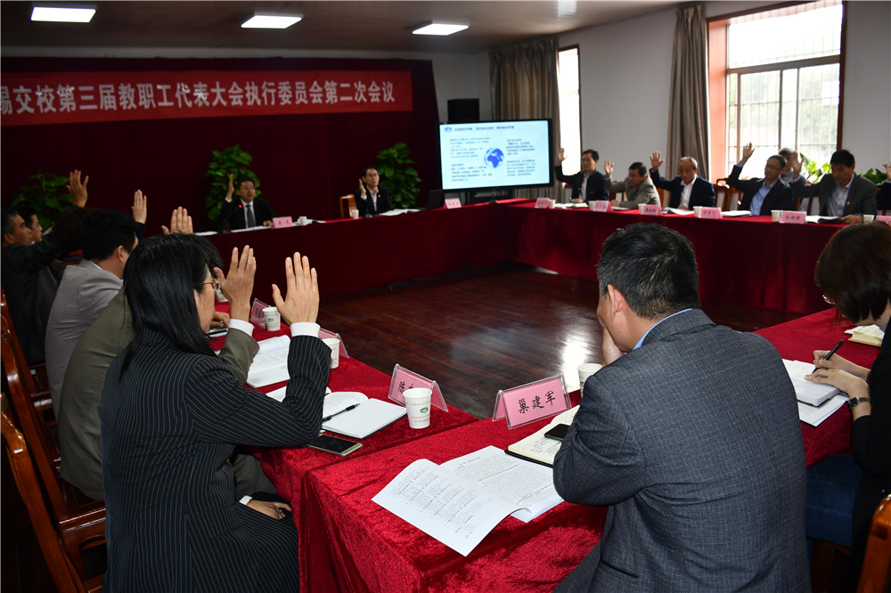 11月7日,学校召开第三届教职工代表大会执行委员会第二次会议。教职工代表大会执委会成员出席会议,全体中层干部及部分教师代表等近50人列席了会议。学校党委书记李虎主持会议。