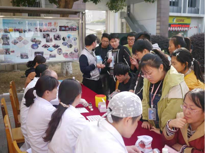 为推进“不忘初心、牢记使命”主题教育,普及卫生健康预防知识,提高广大师生卫生健康意识,10月30日下午,由学校工会后勤党支部牵头,会同民建无锡医药总支、农工无锡市中心血站支部及钱桥社区卫生服务中心、无锡山禾集团医药连锁、无锡兰桂医疗股份有限公司联合在学校开展《秋冬季传染病预防宣传及健康义诊》活动。