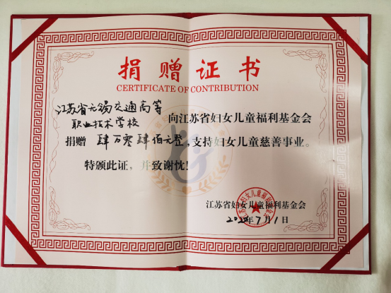 6月学校组织教职工参加省妇女儿童基金会组织向老区捐助“我助妇儿康·与爱童行”200元爱心包活动,定向向省交通运输厅驻涟水县工作队所在负责帮扶的涟水县成集镇条河村的儿童捐助了202个爱心包,价值人民币4.04万元。特别是汽车学院教职工几乎人均一只,目前爱心包正配发到位,在这次活动中,学校荣获江苏省儿童福利基金会颁发的“爱心单位”荣誉称号。下一步学校拟利用暑期组织老师及子女开展现场结对活动,加强多方面沟通。