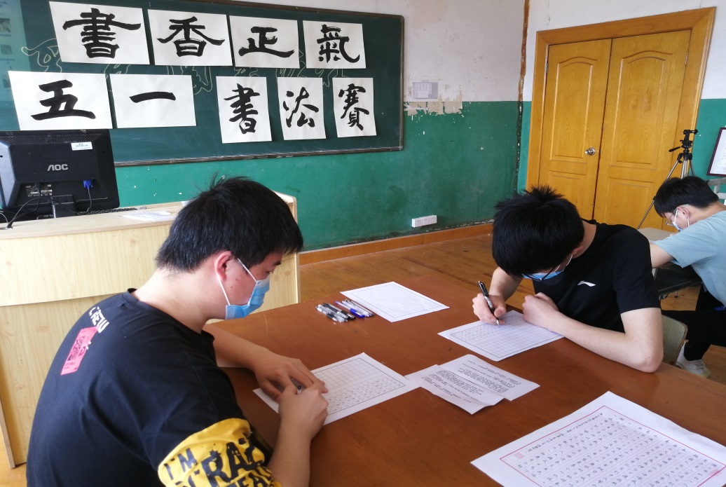 “墨香阁”书法社指导老师褚晓林指导书法社会员,通过节前宣传、参赛报名、场地布置等准备工作,通过爱好书法艺术的同学们积极踊跃报名,进20名同学报名参赛。活动中,选手们共同观看了“文字的演变”动画片,大家对中国汉字的起源、演变、应用有了更为深刻的认识。随后开始了书艺的比拼,大家围绕“书香正气”这一主题,选择书写了毛泽东诗词、习近平对年轻人的寄语等名篇佳句。就见选手们在古筝琴曲的伴奏下凝神聚气,一丝不苟完成了自己的硬笔书法作品。