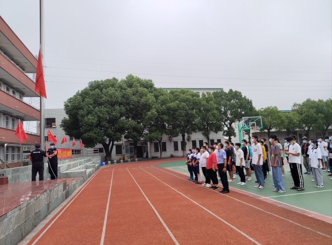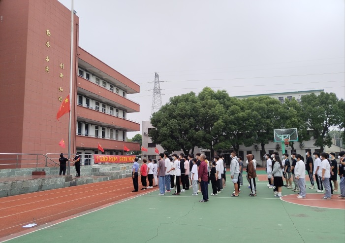 升旗仪式过程中,锡澄校区管理办公室主任褚晓林主持仪式,当天的值班老师、留校学生、食堂、物业负责人、员工都来到现场,庄严肃立,伴随着五星红旗冉冉升起,师生员工齐声高唱国歌,注目国旗升上空中,高高飘扬。