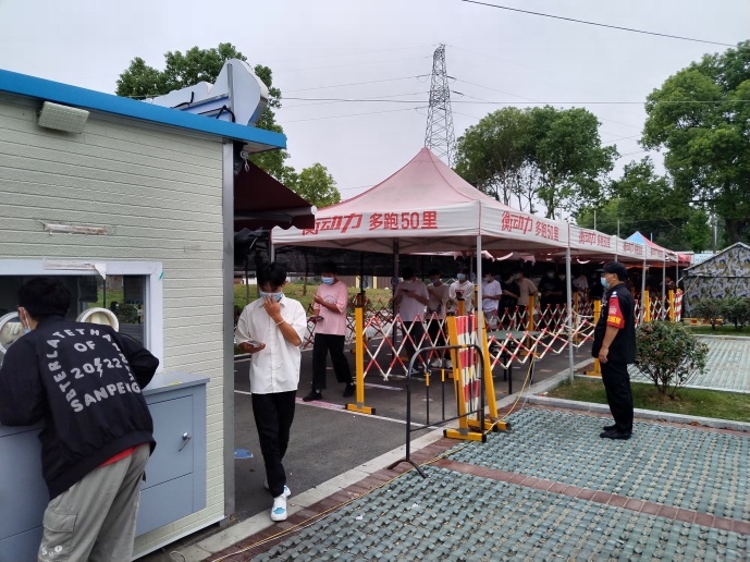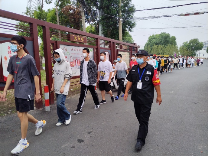 升旗仪式结束后,根据国庆假期疫情防控工作方案要求锡澄校区常态化做好核酸检测工作,锡澄校区管理办公室担负国庆期间留校师生的核酸检测的组织任务。上午9:00全体留校学生在校园广场集中、整队、点名,随后同学们在校区办褚晓林主任、值班老师徐建新、保安以及学生干部的带领下在塘头社区进行了核酸检测。整个核酸检测过程,同学们戴口罩、扫码、采样井然有序。