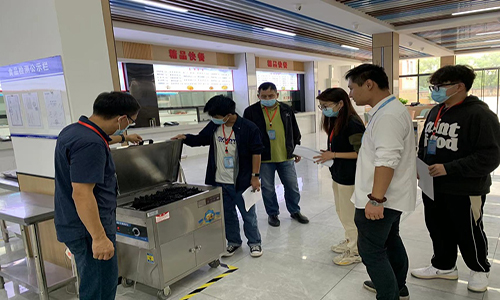 2023年10月13日上午,锡澄校区管理办公室组织校区医务、安保、食品安全员、食品卫生监督员(学生代表)、食堂经理等成员对食堂食品安全卫生工作进行联合检查。
