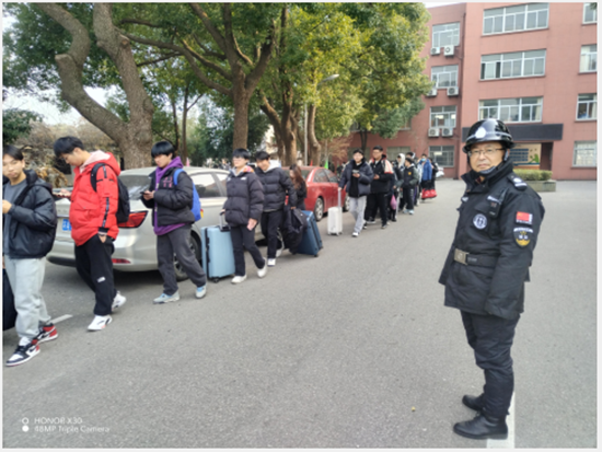 2023年12月29日锡澄校区各班级学生完成当天的学习任务准备元旦假期离校返家。校区办协调机械学院做好学生离校的智慧校园系统请假登记工作,下午临近放学时间,校区办杨蓉老师以及保安已经在校门做好学生离校出门检查,并对离校秩序做好现场监控,还不时提醒骑电动车的同学要戴好头盔,路上要注意交通安全。在系统刷卡声中,同学们井然有序地离校。愿新的一年里校园平安、师生安全、工作学业进步。