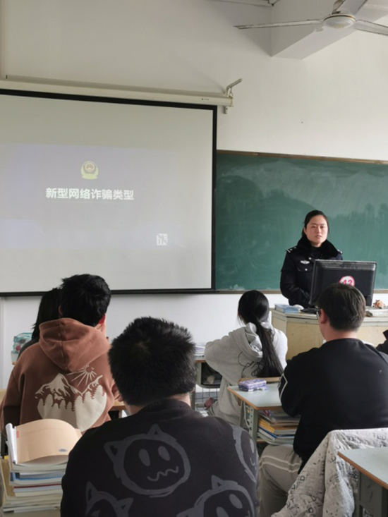班级宣讲中,沙警官从什么是网络电信诈骗、网络电信诈骗的现状特点、网络诈骗常见的类型以及实际案例,全方位教育学生如何避免被诈骗。