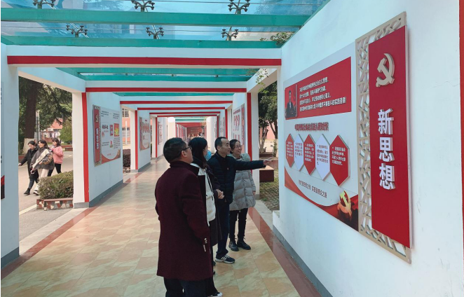 为加强党员干部对于“党史、新中国史、改革开放史、社会主义发展史”的学习,准确把握党的领导这一主线,切实增强在实践中守初心、担使命的思想自觉和行动自觉。2020年12月14日下午,思政教研室党支部组织全体党员干部参观党建长廊。