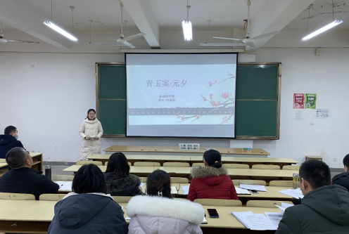 2021年1月22日9时,基础教学部在阶梯教室508召开新教师培训第三阶段。本次培训由基础教学部主任陈建明主持,基础教学部党总支副书记杨风琴、副主任许莹霞、各教研室主任以及10名新教师参加本次培训。