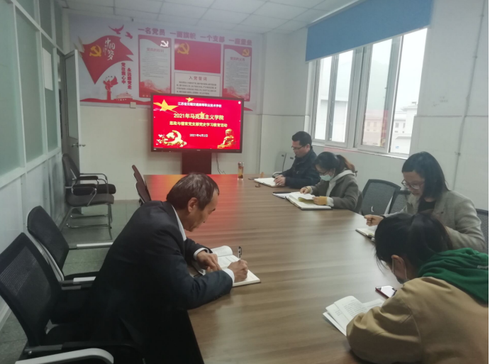 2021年4月2日下午思政教研室党支部在部门会议室进行了党史学习教育,思政教研室党支部全体党员同志参加了本次学习。