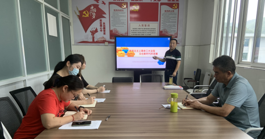2021年7月2日上午9:00,英语教研室党支部在部门会议室开展了“新民主主义革命三大法宝及在新时代的发展”专题党课和“学党史 悟思想 办实事 开新局”专题组织生活会,党支部全体党员同志参加了会议。