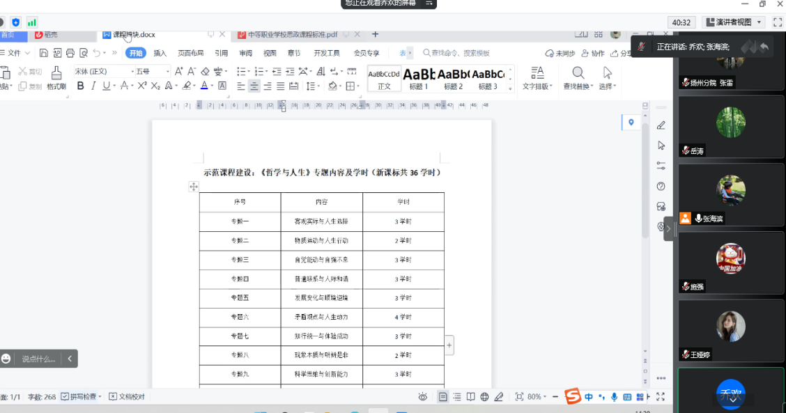 之后,相城中专乔欢老师就《哲学与人生》专题内容及学时问题进行了全面细致的分析,并且就学时问题和与会老师进行了深入的交流,最终达成共识。