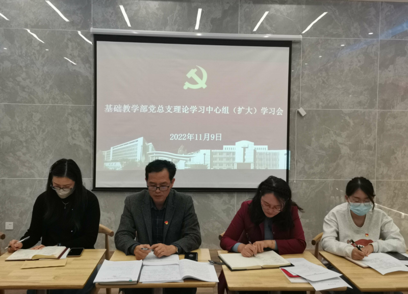 为深入学习宣传贯彻党的二十大精神,强化思想理论武装,按照学校党委统一部署,11月9日下午,基础教学部党总支召开了主题为“深入学习宣传贯彻党的二十大精神 奋力谱写学校高质量发展新篇章”的理论学习中心组(扩大)学习会。学校巡学旁听组成员、学校副校长耿兴华出席会议并讲话。基础教学部党总支委员,全体党员参加会议,学校巡学旁听组成员张薇列席会议。会议由基础教学部党总支副书记杨凤琴主持。