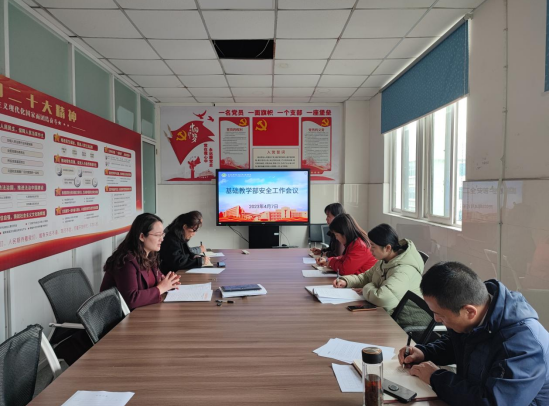 2023年4月7日上午9:00,基础教学部在部门会议室召开安全工作会议,党总支委员及支部书记参加会议,会议由党总支副书记杨凤琴主持。