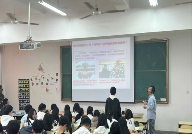 王教授以讲述红色党史故事引导学生深入了解英雄事迹与真诚爱戴革命英雄,激励学生要珍惜今天的幸福生活。整场讲座在庄严而激人奋进的气氛中进行,王教授给学生们讲清楚了青年人应该去追什么样的星、去崇拜什么样的人、去如何感恩和缅怀革命英烈等问题。