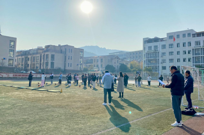 2023年12月5日上午,基础教学部体育教研室夏琪老师教学能力达标汇报课在操场如期开展。基础教学部党总支副书记杨凤琴、教务处李敖老师、“青蓝工程”结对师父钱建平老师以及部门骨干教师代表参与听课和评课。