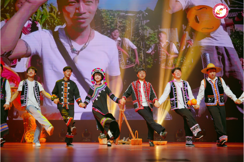 在语言艺术类专项赛中,我校师生自编自导自演的话剧《拉祜脱贫记》凭借出色的表现,荣获市级展演语言类金奖和市属院校艺术展演语言类金奖。该作品由郭晓琳、王涛、金晶三位教师担任主创,并带领学生全程参与剧本创作、排练演出等各个环节。话剧生动再现了中国工程院院士朱有勇带领云南拉祜族实现脱贫致富的感人故事。表演团队以沉浸式戏剧手法,将民族文化传承与乡村振兴实践深度融合,获得现场评委的高度评价。
