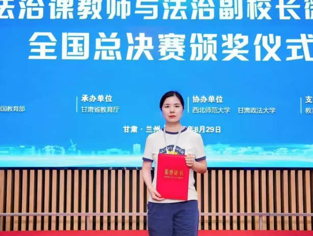 在8月28日举办的中小学法治课教师与法治副校长微课比赛全国总决赛中,我校聂婷婷老师荣获二等奖。