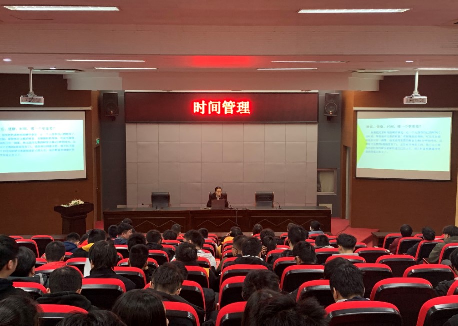 陈东焰老师在日常教学中,发现学生的时间利用率低,时间管理能力差,希望通过本讲座的开设,能让学生学会如何制定计划,充分利用时间,学会时间管理,提高成效。讲座包含五方面:一、时间管理概述;二、时间管理的四个发展历程;三、时间管理的陷阱;四、如何跨越时间陷阱;五、时间管理方法论。