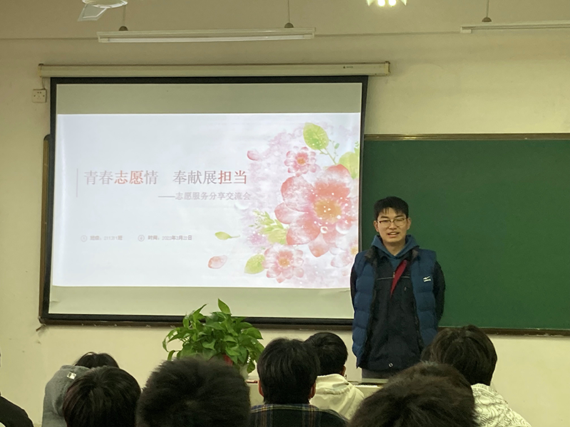 3月22日,211311班在教室开展了“青春志愿情 奉献展担当——志愿服务分享会”活动,邀请了学校志愿服务经验丰富的谢宇轩同学、聂东源同学、朱科丞同学、冯祯豪同学给大家做经验分享,他们从自身参与的志愿服务谈起,向同学们诠释了“奉献 友爱 互助 进步”的志愿服务精神,同学们纷纷表示要向学长们学习,投身志愿服务活动,做雷锋精神的传承者。